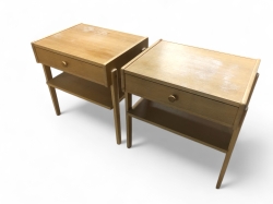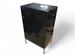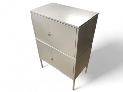 B.60, d.40, h.105cm. Ett hyllplan i varje skåpdel. Repig ovansida, någon mindre buckla på en kortsida