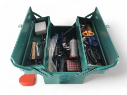 Med uppsamlare, batteri och batteriladdare