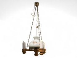 H. ca 80cm. Ett prismahänge saknas på övre delen, se bild. Några prismor medföljer lösa och behöver fästas